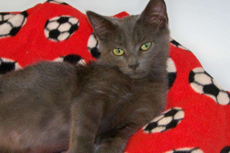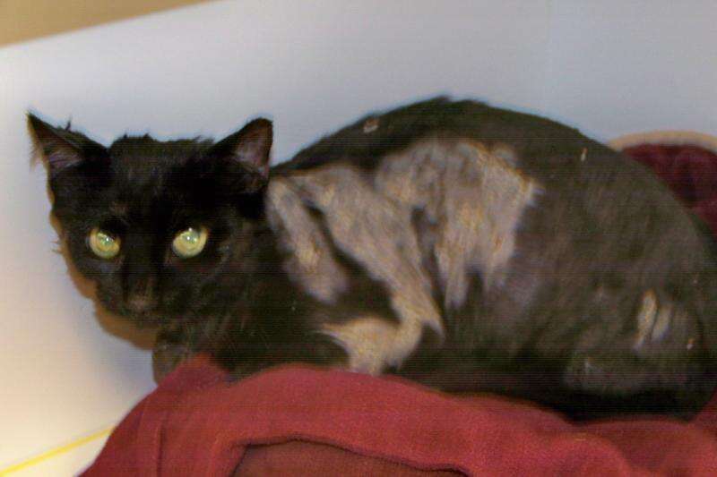 Onyx is a 6-year-old black cat that was found in a volunteer’s yard. He had to be totally shaved down at the animal hospital because someone threw tar all over him. This guy will not be ready to be adopted for some time. He needs to recover from his trauma and wounds.