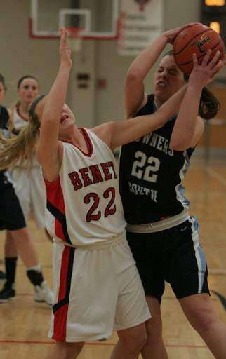 Benet's Sidney Prasse, (21) rebounds over Bartlett's Elizabeth Arco (20), during girls basketball at the 2011 Tip-Off Tournament in Lisle. Daniel White | Staff Photographer