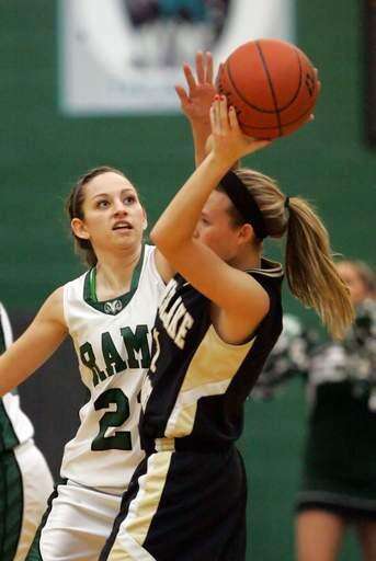 Vernon Hills center Meri Bennett-Swanson, right, takes the rebound away from Grayslake Central players Beth Arnold and Claire Brennan during the girls high school basketball game Tuesday between Vernon Hills at Grayslake Central.