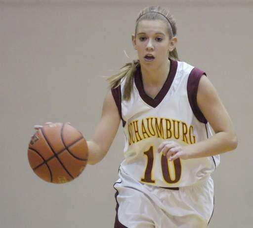 Bartlett's Haley Videckis, middle, scores her 1,000th career point during Wednesday's game at Schaumburg. JOE LEWNARD | Staff Photographer