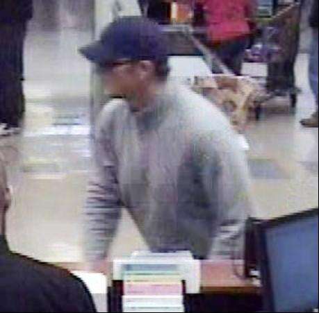 Cynthia Yates, a spokeswoman with the FBI, said the white male wearing a blue baseball cap walked up to a teller inside the Jewel-Osco Food Store at 440 E. Rand Road and announced the robbery.