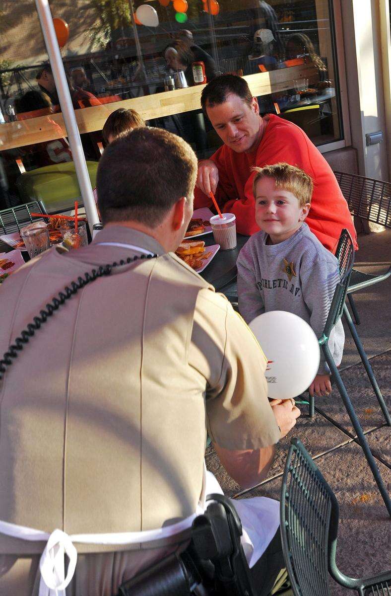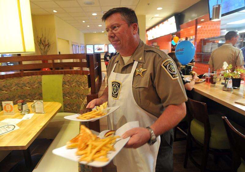 Uniformed officers from the Deerfield Police Department served Tom & Eddie’s customers on Oct. 2 as part of a fundraiser titled “Burgers and Badges.”