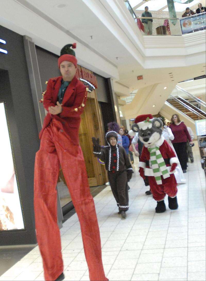 Accompanied by clowns from the Ringling Bros. and Barnum & Bailey Circus, stilt-walking elves and the drum corps of Conant High School in Hoffman Estates, Santa's arrival was celebrated by a parade through the shopping center that ended in the central Grand Court.
