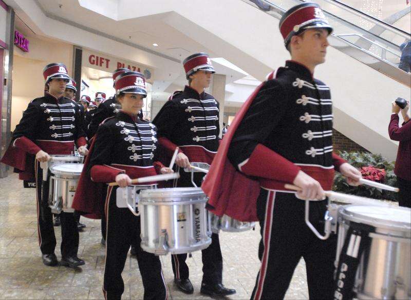 The Conant High School Drum Corps from Hoffman Estates leads off the parade for SantaÂ’s arrival Thursday at Woodfield Shopping Center in Schaumburg. Bill Zars/bzars@dailyherald.com