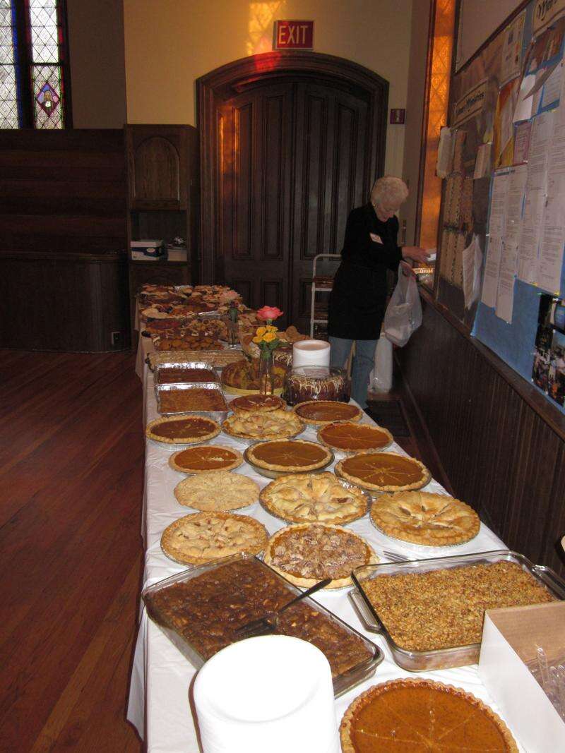Tables are set up in the fellowship hall, the parlor, and in the first-floor lobby and an office. Carryout is also available.