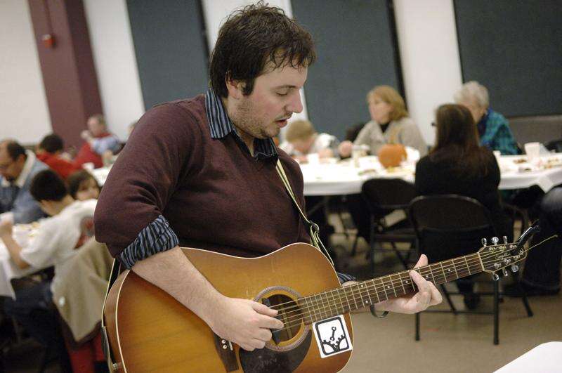 Jesse Greco of Elgin plays requests for diners at the Thanksgiving Community Dinner Thursday at The Hemmens in Elgin. Laura Stoecker/lstoecker@dailyherald.com