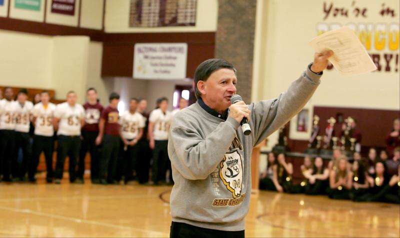 A pep rally to celebrate Montini’s third consecutive win of the Class 5A state football championship ended the day at the Lombard school.