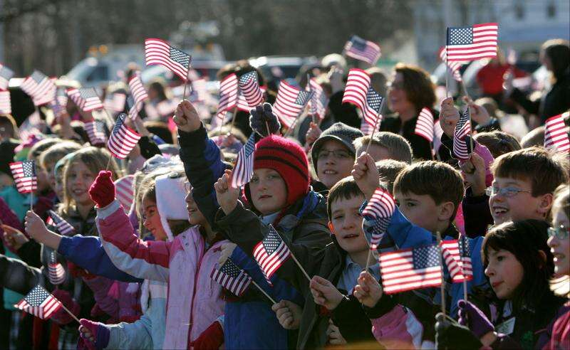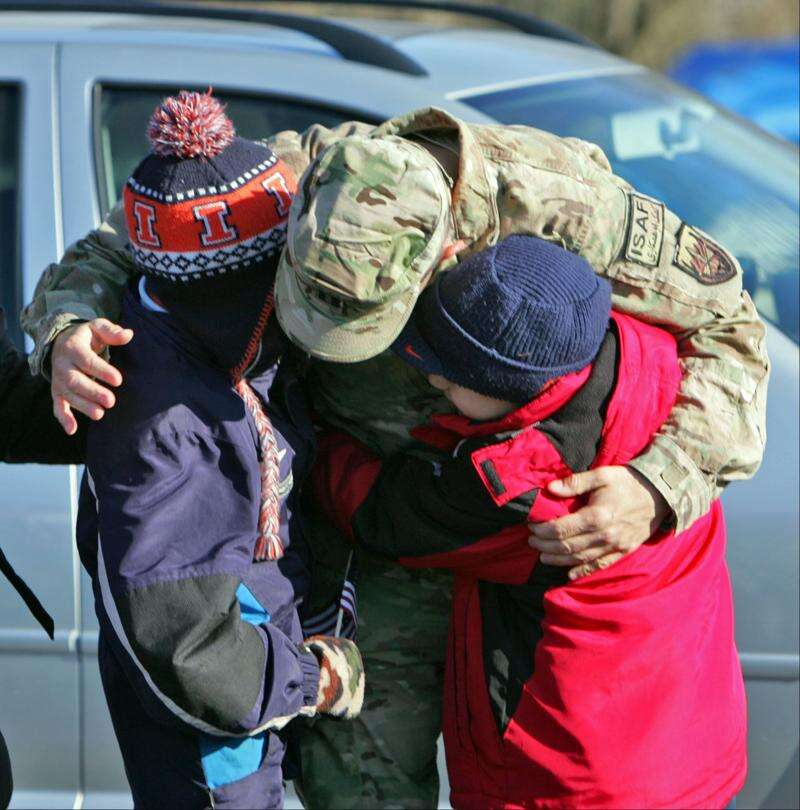 With more than 650 flag-waving students loudly chanting “USA,” Navy Lt. Daniel Smigielski embraced his two children in a parking area behind St. Patrick's School in Wadsworth.