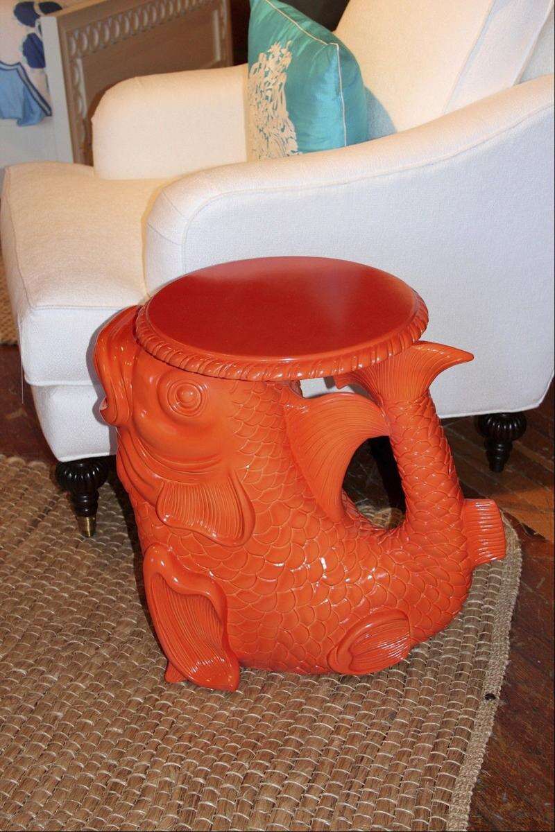 Lilly Pulitzer showed several ceramic creature-themed accent tables (or stools), including a turtle, Foo dogs and a goldfish, that come in white, green, orange turquoise and pink.