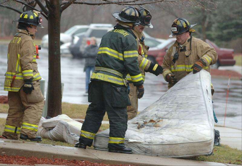 Firefighters were called to the Landings of Lake Zurich Apartment Complex in the 100 block of N. Buesching Road at 8:18 a.m. for a fire reported in a second floor apartment, Lake Zurich Fire Chief David Wheelock said.