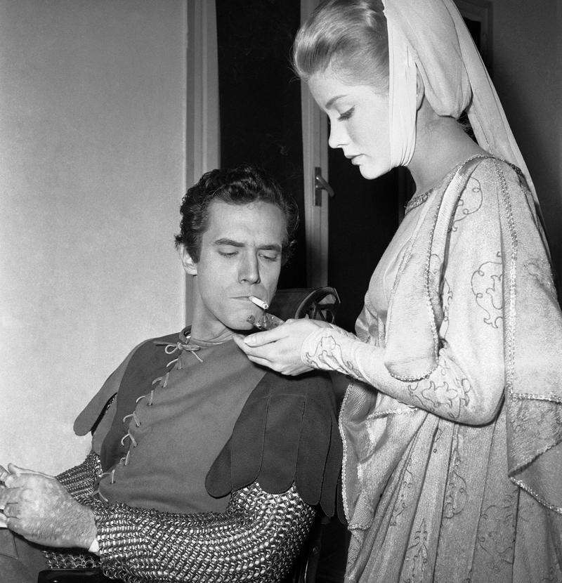 In this Dec. 19, 1960 file photo, actress Dolores Hart lights a cigarette for actor Bradford Dillman, in a break of the shooting of the movie, “Saint Francis of Assisi,” in Rome. Dillman had the starring role of Saint Francis, while Hart played the part of Saint Clare, the nun who founded the order of St. Clare. Hart, whose luminous blue eyes entranced Elvis Presley in his first on-screen movie kiss, is now a cloistered nun and praying for a Christmas miracle. She walked away from Hollywood stardom in 1963 to become a nun in rural Bethlehem, Conn. Now she finds herself back in the spotlight, but this time it’s all about serving the King of Kings, not smooching the King of Rock and Roll. The former brass factory that houses Mother Dolores and about 40 other nuns cloistered at the Abbey of Regina Laudis in Bethlehem, Conn., needs millions of dollars in renovations to meet fire and safety codes, add an elevator and make handicap accessibility upgrades. (AP Photo/CR, File) Associated Press/1960