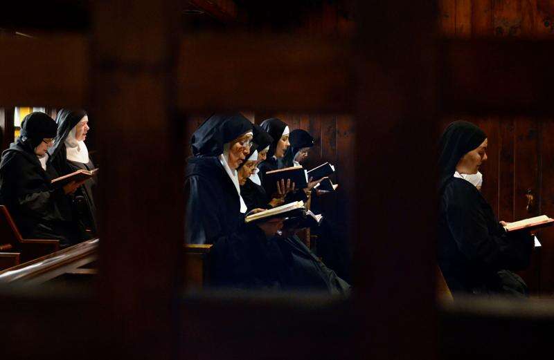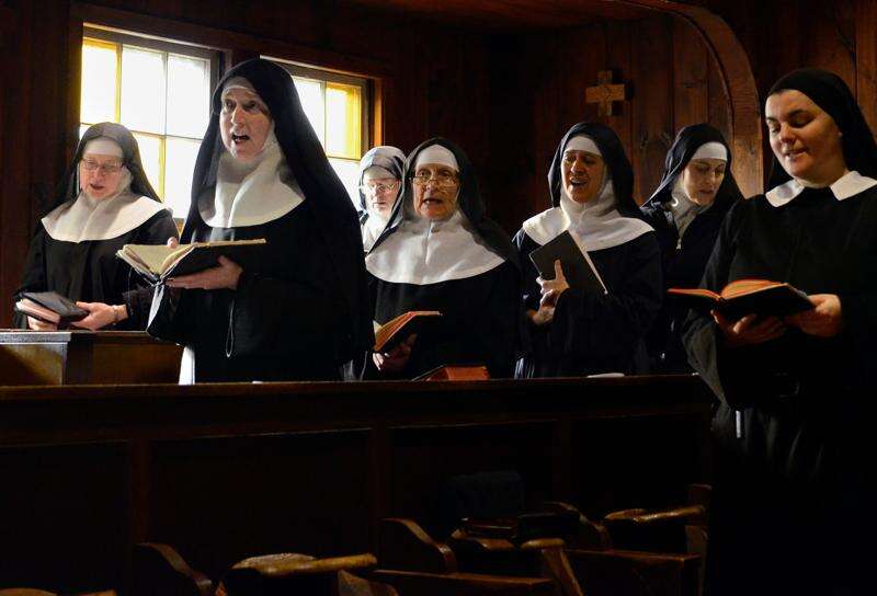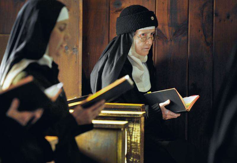 Mother Dolores Hart, right, participates in two of seven daily prayers in the Abbey of Regina Laudis monastery in Bethlehem, Conn. Mother Dolores, a cloistered nun whose luminous blue eyes entranced Elvis Presley in his first on-screen movie kiss, is praying for a Christmas miracle. She walked away from Hollywood stardom in 1963 to become a nun in rural Bethlehem. Now she finds herself back in the spotlight, but this time it’s all about serving the King of Kings, not smooching the King of Rock and Roll. The former brass factory that houses Mother Dolores and about 40 other nuns cloistered at the Abbey of Regina Laudis needs millions of dollars in renovations to meet fire and safety codes, add an elevator and make handicap accessibility upgrades. Associated Press