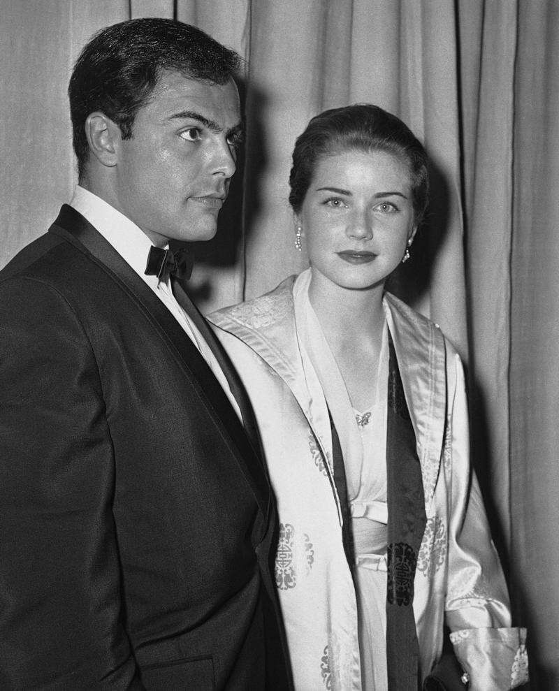 In this April 4, 1960 file photo, actor John Saxon and actress Dolores Hart arrive at Pantages Theater in Hollywood, Calif., for the Academy Awards show. Hart, whose luminous blue eyes entranced Elvis Presley in his first on-screen movie kiss, is now a cloistered nun and praying for a Christmas miracle. She walked away from Hollywood stardom in 1963 to become a nun in rural Bethlehem, Conn. Now she finds herself back in the spotlight, but this time it’s all about serving the King of Kings, not smooching the King of Rock and Roll. The former brass factory that houses Mother Dolores and about 40 other nuns cloistered at the Abbey of Regina Laudis in Bethlehem, Conn., needs millions of dollars in renovations to meet fire and safety codes, add an elevator and make handicap accessibility upgrades. Associated Press/1960