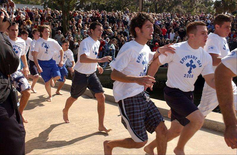 TARPON SPRINGS, Fla. — In a spectacle repeated every Jan. 6 for more than a century, dozens of teenage boys set out from the stately Greek Orthodox cathedral in this Florida Gulf Coast town to seek God's blessing in the chilly waters of a bayou several blocks away.
