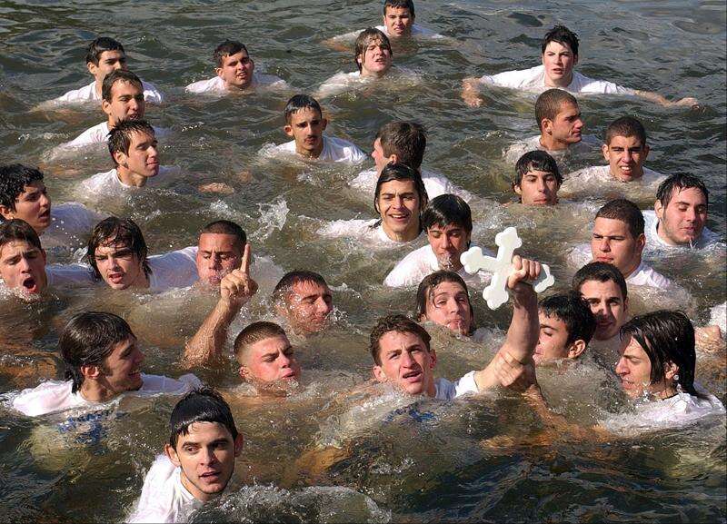 They dive off row boats and, in a chaotic flailing of arms and legs, grope in the murky water for a wooden cross tossed in by a priest. The one lucky enough to surface with it earns instant celebrity status, a ride through the streets on the shoulders of his peers and — the Greek-American boys believe — the favor of God in the coming year.