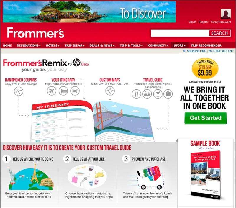 Frommer's has just introduced customized printed travel guides called Frommer's Remix that integrate personal itineraries and preferences with advice from Frommer's experts. You can design and order a Remix for $20, for more than 30 destinations, frommersremix.com. Remix also comes with coupons geared to your itinerary.