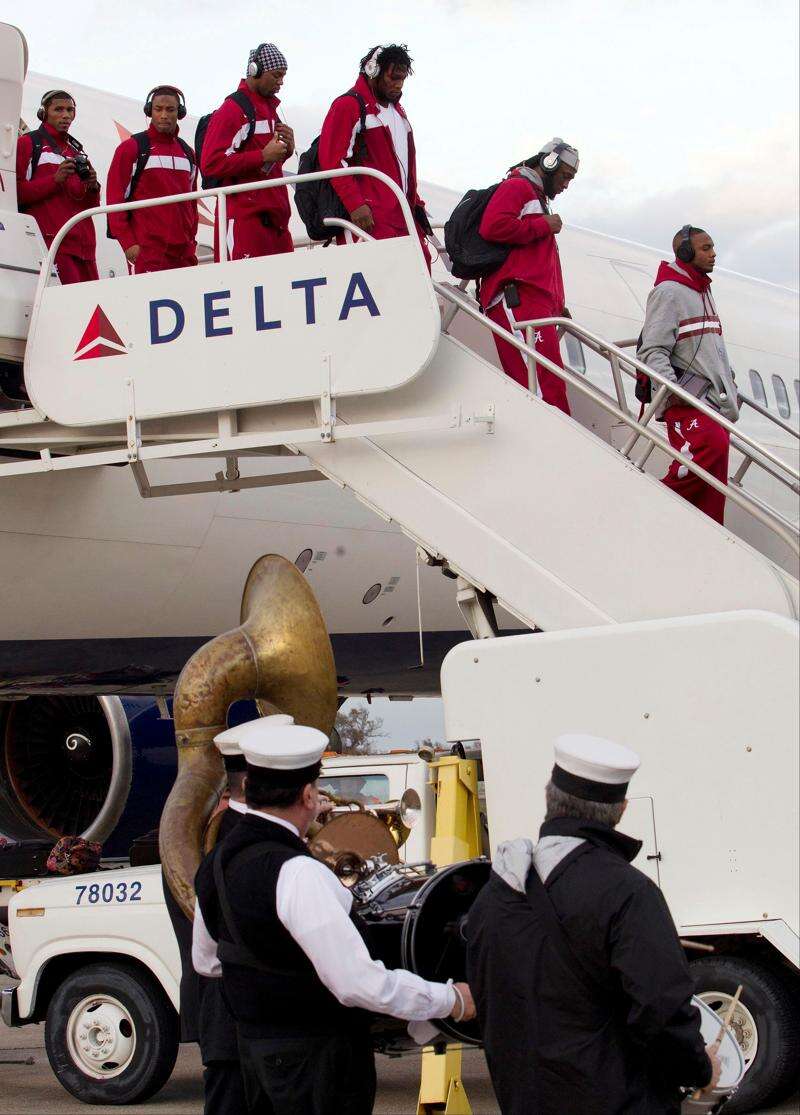 For Alabama, it was a short flight, and a brass band greeted the Crimson Tide (11-1) as they got off the plane, while somebody shouted “Roll Tide!” as coach Nick Saban talked to reporters.