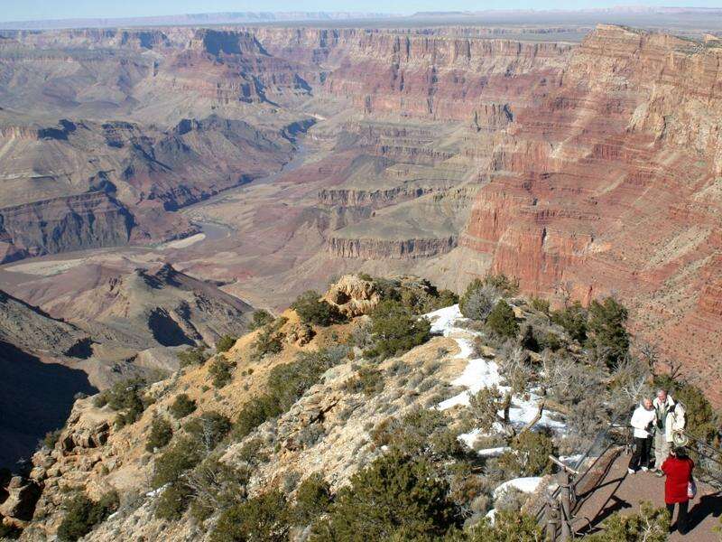 My husband, our two teenage daughters (one of whom was furious that we weren’t in the Caribbean) and I walked toward the South Rim at Yavapai Point, where there’s an indoor observation station with a scale model of the canyon. We passed a couple heading back to the parking lot.