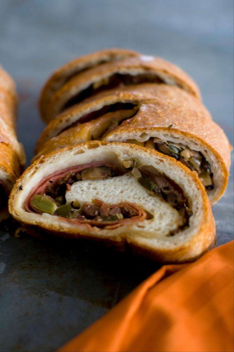 To serve, stromboli are simply sliced like a loaf of bread, creating a spiral baked sandwich that is perfect for large parties. If you like, you also can serve sandwich condiments (or even warmed marinara) alongside the stromboli slices for dipping. We've offered suggestions for fillings; but mix and match to suit your group (or devise your own combination).
