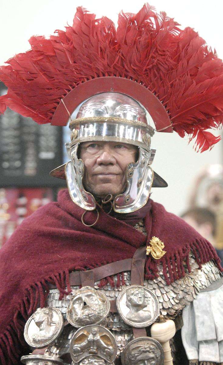 “We come to this every year. This is the first year we’ve set up a tent,” said Lee Holeva, who was dressed in Roman chain-mail acting as his character, Titus Licinius Neuraleanus. “We see all the other displays and what they’ve done.”