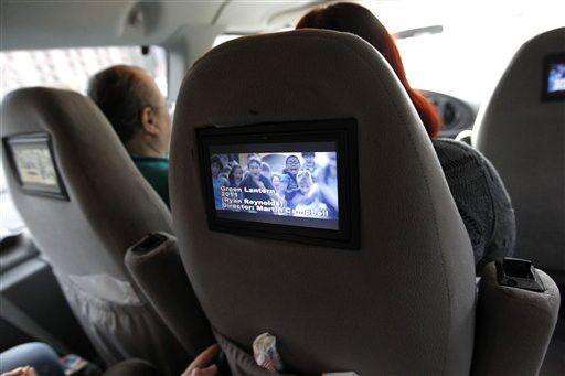 Participants on a New Orleans Movie Tours watch a clip from the movie “Green Lantern” while visiting a site where the movie was filmed. Associated Press