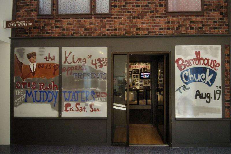 In addition to the stage — which comes equipped with a karaoke machine, drum set and guitar for those who aren’t inclined to bring their own — the exhibit showcases a wide array of blues memorabilia collected by “Barrelhouse Chuck,” a blues pianist from Libertyville who has played with blues great Bo Diddley and opened for Willie Dixon, B.B. King, and Muddy Waters.