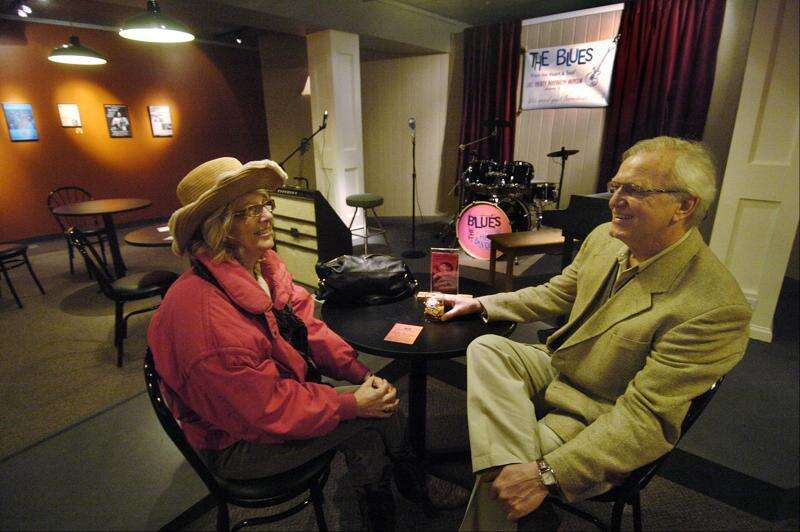 “I ran home and got my own guitar,” said Peterkort, who lives five minutes away in Hawthorn Woods and on Saturday played the song “Stormy Monday” on a mock stage set up as part of the Lake County Discovery Museum’s new exhibit: “The Blues: From the Heart and Soul.”