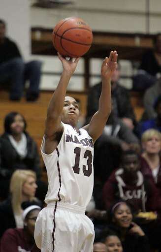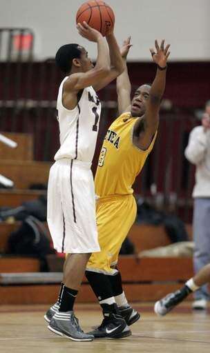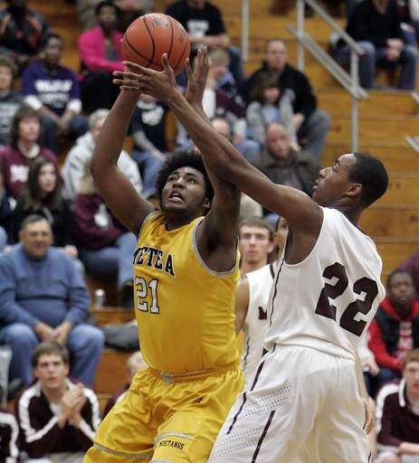 Metea Valley's TreSean Mackey puts up a three as Elgin's Gerardo Mojica applies pressure. Brian Hill | Staff Photographer