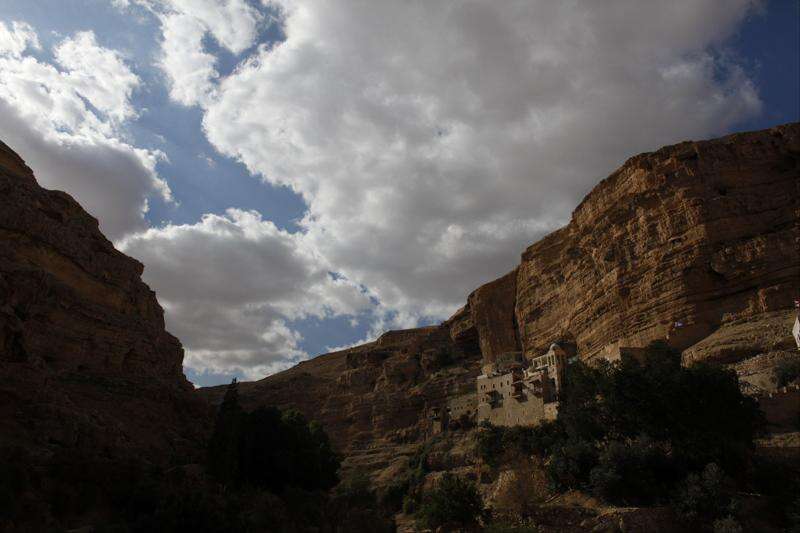 With its source of natural water, the gorge of Wadi Qelt in the West Bank, located a 20-minute drive from Jerusalem on the way to the Dead Sea, provides a green respite amid the arid landscape of the Judean Desert. This is where the Bible says the prophet Elijah lived, and it is the spot chosen by fifth-century hermits. In a reminder of the modern Middle East, vehicles must pass through Israeli and Palestinian checkpoints on the trip.