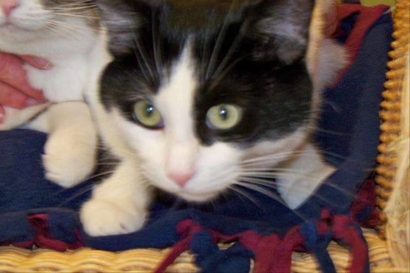Indie is a 6- or 7-year-old spayed female. Indie is a black and white tuxedo cat. She is friendly and outgoing in spite of the fact that she lost the only home she ever knew when her owner died abruptly. She found herself homeless with her sister, Gabby.