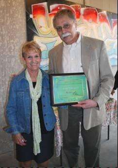 Jean Denam accepted the Volunteer of the Year Award for the many unpaid hours she spends organizing, checking in and shelving books.