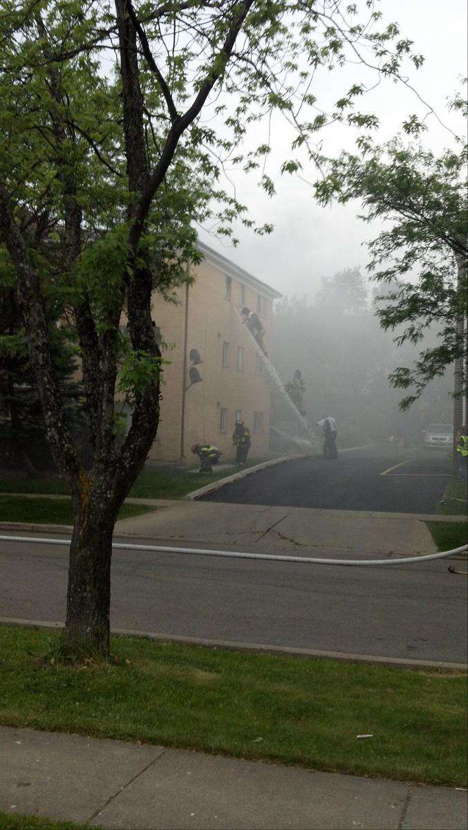 Craig Consoer of Streamwood was also one of the first eyewitnesses on scene, after he heard about the fire on a police scanner he owns. He said once firefighters put the ladders up on the west side of the building, it took only about five minutes to get all the residents out.