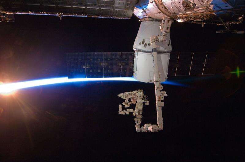 In this image provided by NASA with rays of sunshine and the thin blue atmosphere of Earth serving as a backdrop, the SpaceX Dragon commercial cargo craft is berthed to the Earth-facing side of the International Space StationÂ’s Harmony node Sunday May 27, 2012. Expedition 31 Flight Engineers Don Pettit and Andre Kuipers grappled Dragon at 9:56 a.m. (EDT) with the Canadarm2 robotic arm and used it to berth Dragon to the at 12:02 p.m. May 25, 2012. Dragon became the first commercially developed space vehicle to be launched to the station. Dragon is scheduled to spend about a week docked with the station before returning to Earth on May 31 for retrieval.