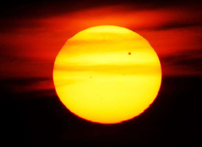 The planet Venus crosses the upper right portion of the sun as seen from Edgewater Park in Cleveland on Tuesday, June 5, 2012. The next transit of Venus wont be for another 105 years.