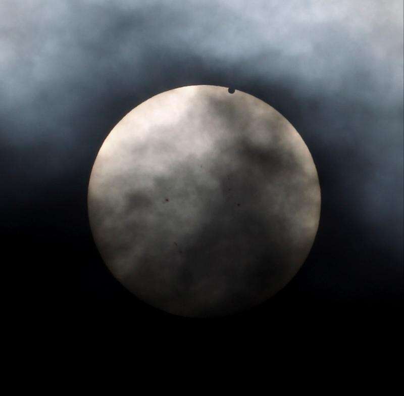 Venus begins to pass in front of the sun, as visible from New York, Tuesday, June 5, 2012. From the U.S. to South Korea, people around the world turned their attention to the daytime sky on Tuesday and early Wednesday in Asia to make sure they caught the once-in-a-lifetime sight of the transit of Venus, which wont be seen for another 150 years.
