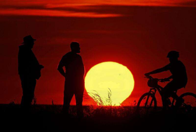 Spectators at Edgewater Park in Cleveland watch the sun set as the planet Venus crosses the upper right portion of the star, Tuesday, June 5, 2012. The next transit of Venus wont be for another 105 years.