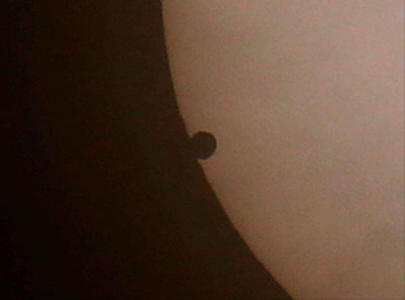 Venus moves past the top of the sun as seen from SUNY Orange in Middletown, N.Y., where a small group of astronomy enthusiasts gathered to watch the transit of Venus Tuesday, June 5, 2012. The next transit wont be until 2117.