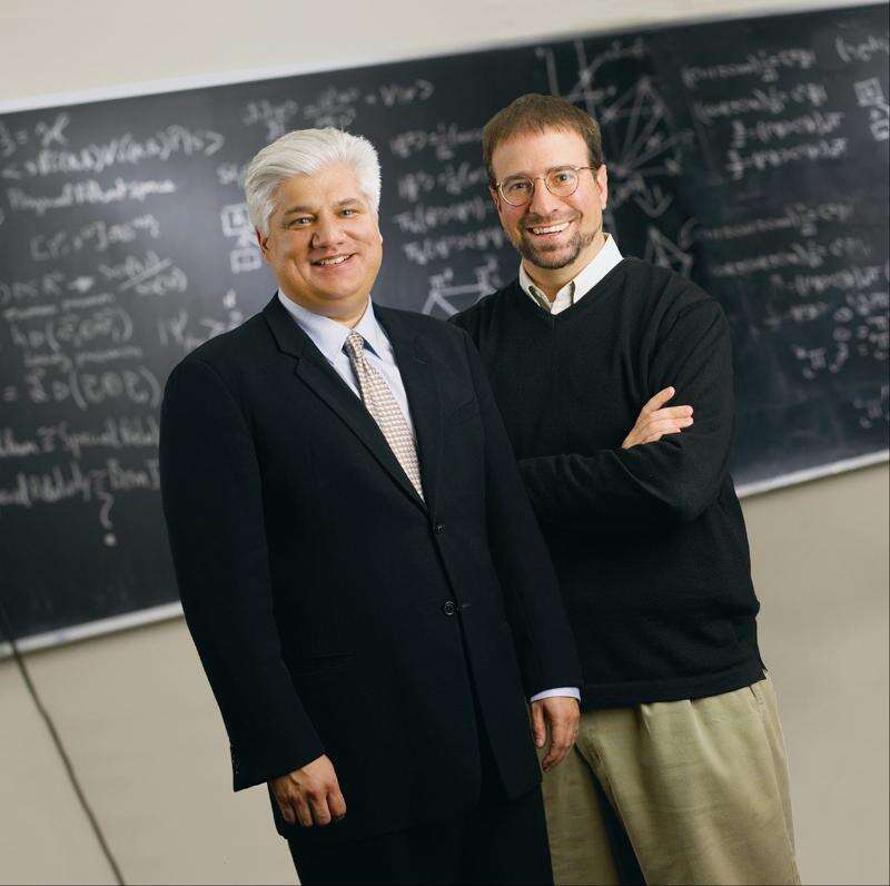 This undated photo provided by Perimeter Institute shows Mike Lazaridis, left, creator of BlackBerry, and Howard Burton, director of the Perimeter Institute in Waterloo, Ontario, Canada. Associated Press file photo