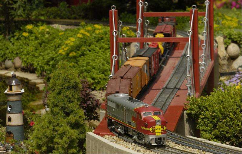 This is one of the scenes along “Train Lady” Elaine Silets’s private model railroad and garden railways. The gardens will be open to the public Saturday as part of a fundraiser for a scholarship fund created in honor of Silets’ late husband, attorney Harvey M. Silets. Bob Chwedyk/bchwedyk@dailyherald.com