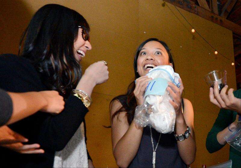 Jessica Nguyen, right, reacts after smelling a shirt as Angela Abad-Santos looks on during a pheromone party, Friday, June 15 in Los Angeles. The get-togethers, which have been held in New York and Los Angeles and are planned for other cities, require guests to submit a slept-in T-shirt that will be sniffed by other participants. Then you can pick your partner based on scent. Associated Press