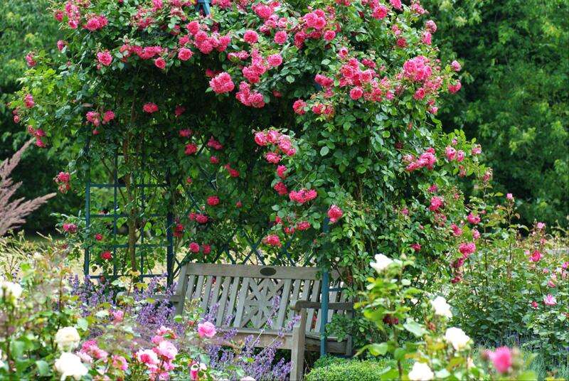 Six-foot trellised obelisks look good in the plant border and are a good armature for a small climber, but if you want to support a larger variety or a sprawling rambler such as Aviateur Bleriot, Francis E. Lester or Seagull, find an excuse to build an arbor or pergola.