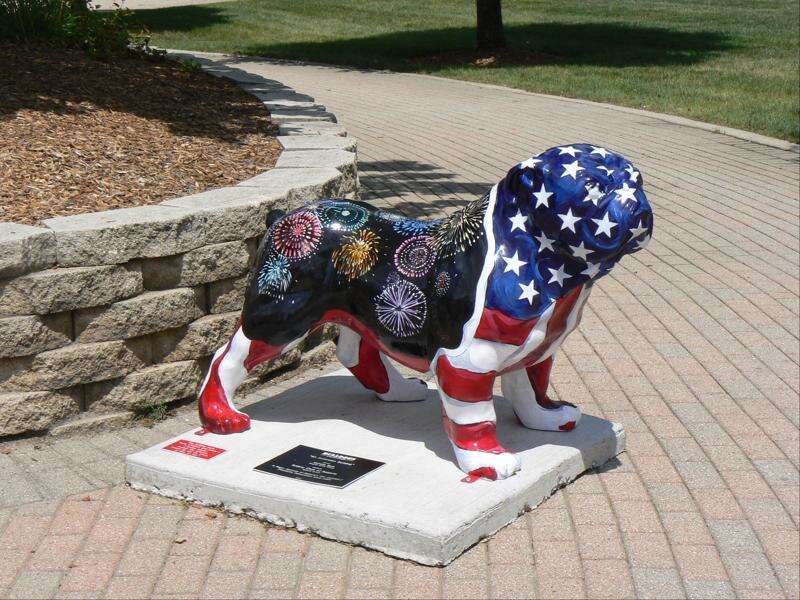 “An American Bulldog,” sponsored by the Rotary Club of Batavia, was designed by artist Michelle Bach. courtesy of Batavia Public Library