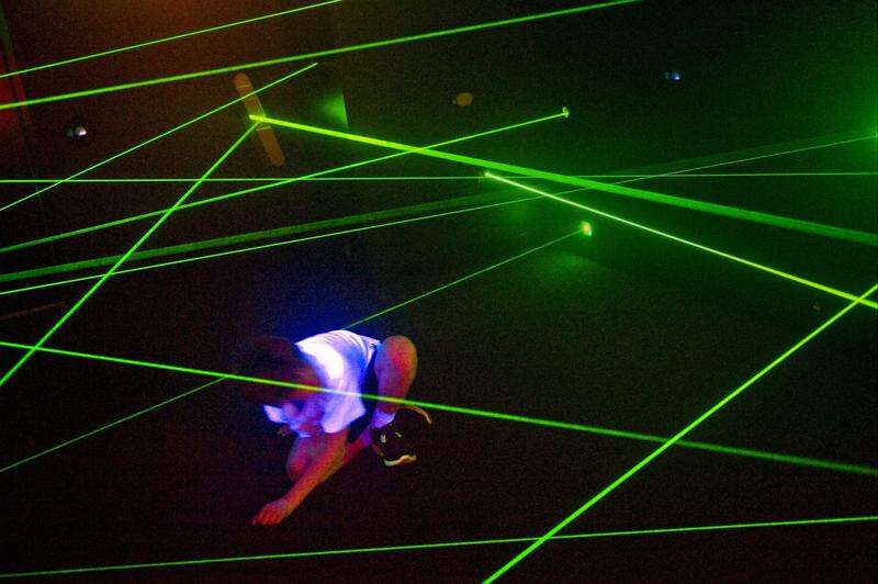 The highlight of the room has to be a “Mission: Impossible”-style laser maze that is used for agility exercises. The barriers can be stationary or set in motion, and the speed at which they move can be varied, increasing or decreasing the degree of difficulty.