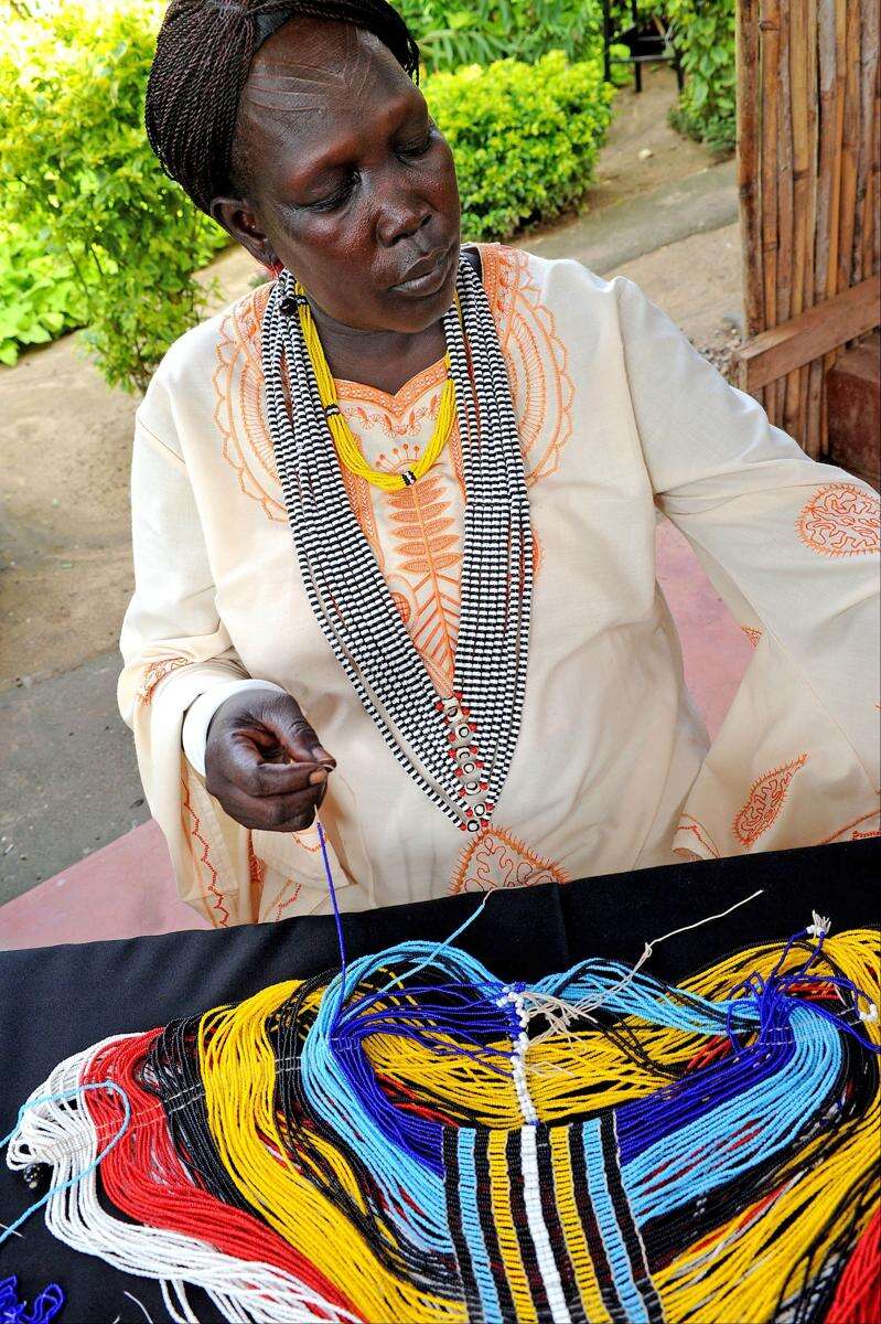 Kuojok, now a grandmother, hadn’t made the beaded corsets that were unique to her Dinka tribe since she was a child, said Roots Project founder Anyieth D’Wol, a former human rights worker.