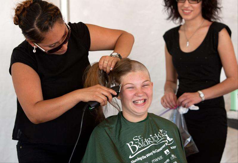 More than a dozen people said goodbye to their hair — and maybe a few degrees of heat — Saturday afternoon as they got their heads shaved for charity at the Taste of Lombard.