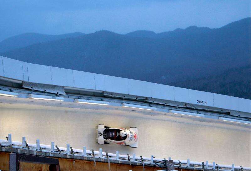 Canada’s Helen Upperton and Shelly-Ann Brown as they compete in the third heat in the women’s bobsled world championships in Lake Placid, N.Y. Lake Placid hosted the Winter Olympics in 1932 and 1980. Several of the venues are still open for tours and recreational use. Associated Press
