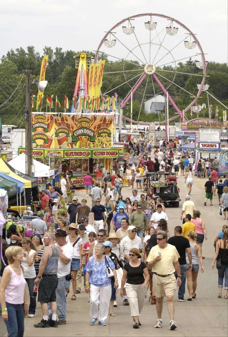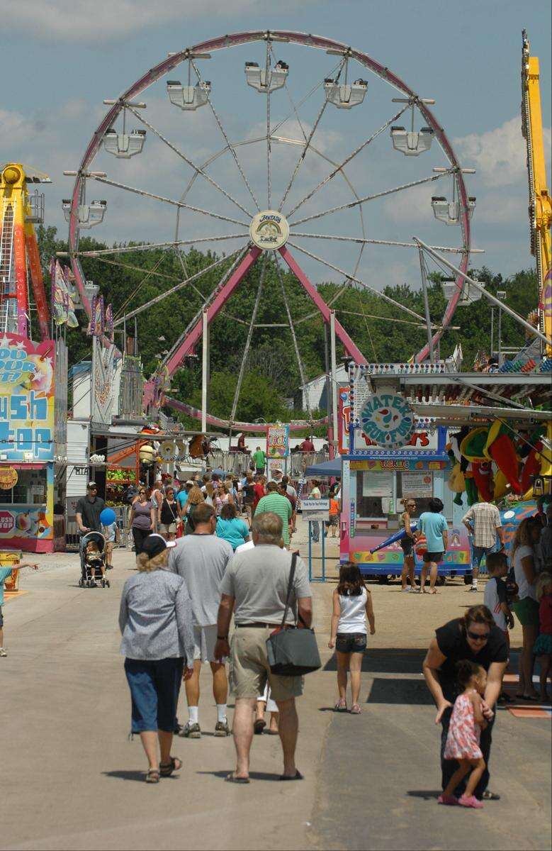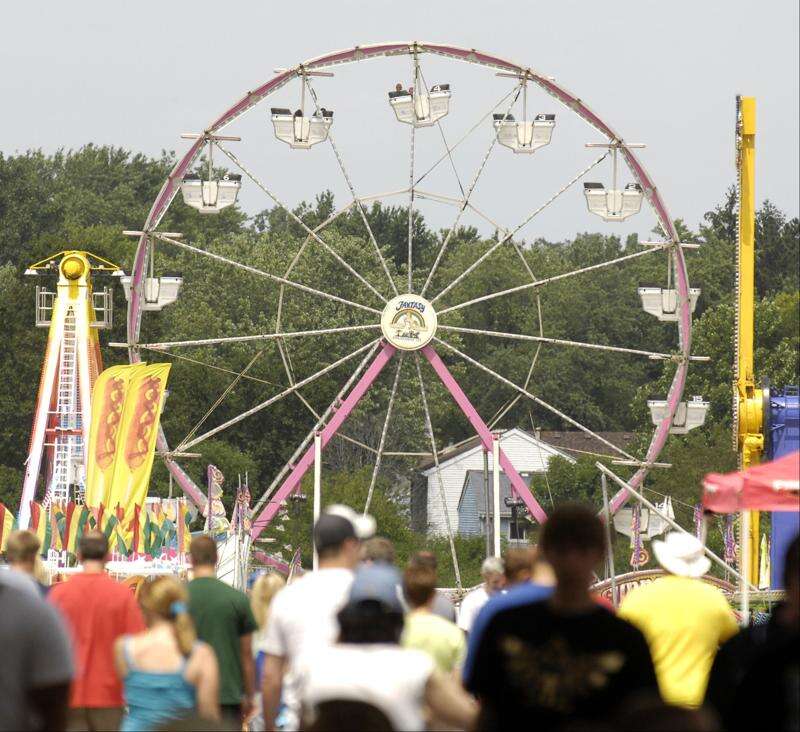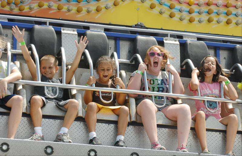 Children scream and shout while riding one of the many thrill rides offered during the DuPage County Fair Saturday.