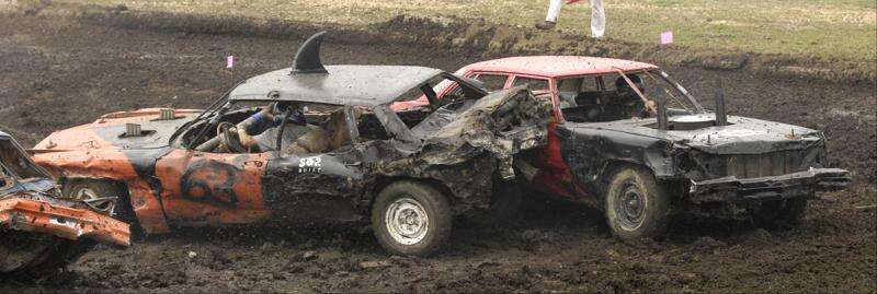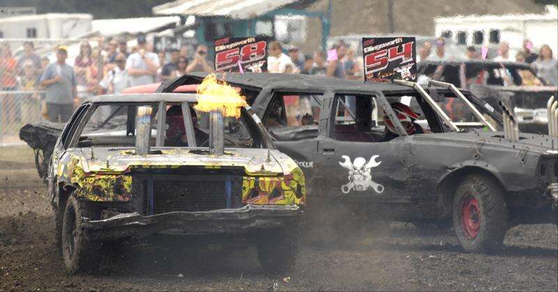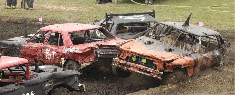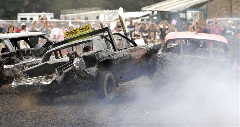 Competitors hit each other hard during the annual demolition derby at the DuPage County Fair, Sunday.