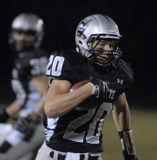 Kaneland’s Jesse Balluff sprints through a hole in DeKalb’s defense on his way to the end zone in the first quarter. Laura Stoecker | Staff Photographer