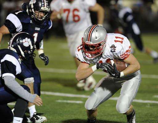 Palatine’s Dan Riddle bobbles the ball on a punt return in the first quarter for the fumble in which Conant recovered.